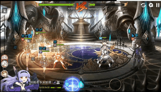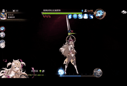 注意场景最上方的血条。可以清楚地看到,不同角色的技能,血条的削减动画大有不同。强调一发入魂的高伤害技能,血条是刷的一下红掉大半,而强调连击爽快感的多段伤害技能,血条的扣除则会配合动作节奏小步快跑,并且与伤害数字跳跃的节拍完全相符。