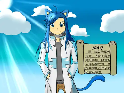 实际上,我正已一只猫的形态蹲在这山丘上,因为喜欢猫所以选择了猫妖这种半精灵种族,懒得捏人所以随机设定了一个形象,结果随机到了一个很羞耻的形象——蓝色长发猫耳的萌萝莉(性别还是男)。在等我的朋友并欣赏风景的过程中为了避免被大叔和宅男玩家搭讪只好用种族特长变成猫形态在这里悄悄地蹲着。