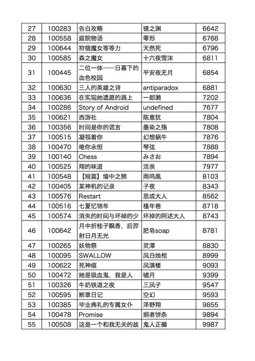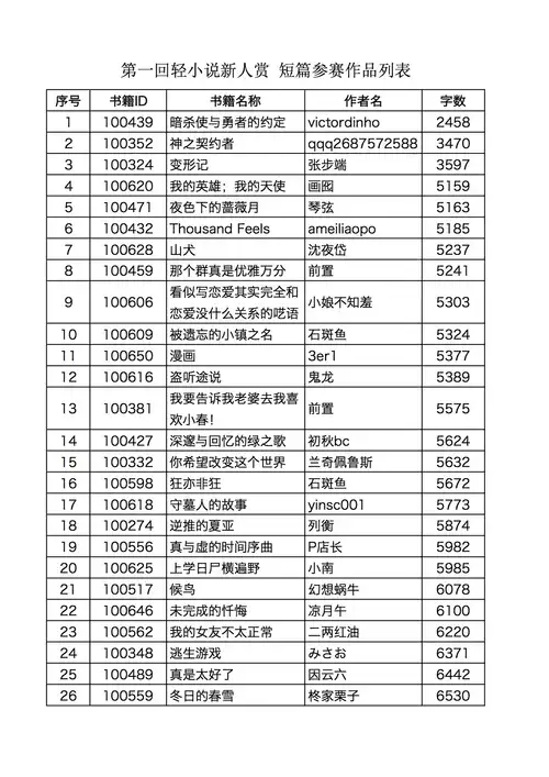 附:短篇区参赛作品列表