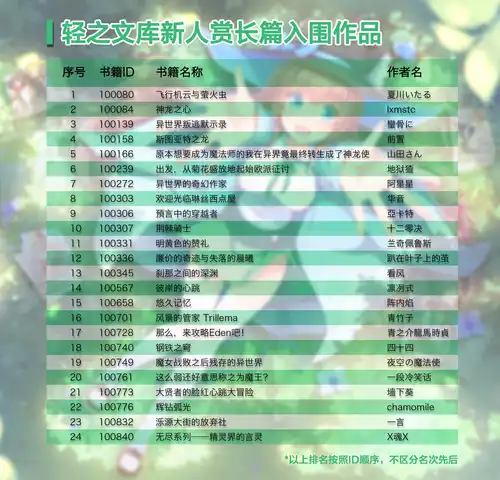 附:輕之文庫新人賞長篇入圍作品列表。