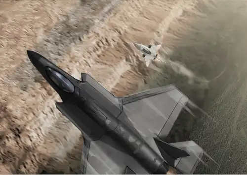 俯冲的“流星”,远处转弯的F-35不知为何看起来像F-22……