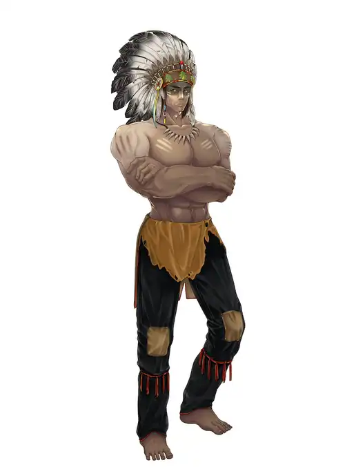 身后跟着的是她带来的两位大臣,一位是戴着羽毛帽,赤裸着黝黑上身的气象大臣霍克。根据资料他是卡罗拉上任后花重金从外国请来的,他们族人世代生活在丛林里,使用各种各样的萨满术控制天气。这些萨满术其实就是气象类灵术,因此即使天生高大魁梧,魔灵族的身份也使他并不具备超越常人的力气。