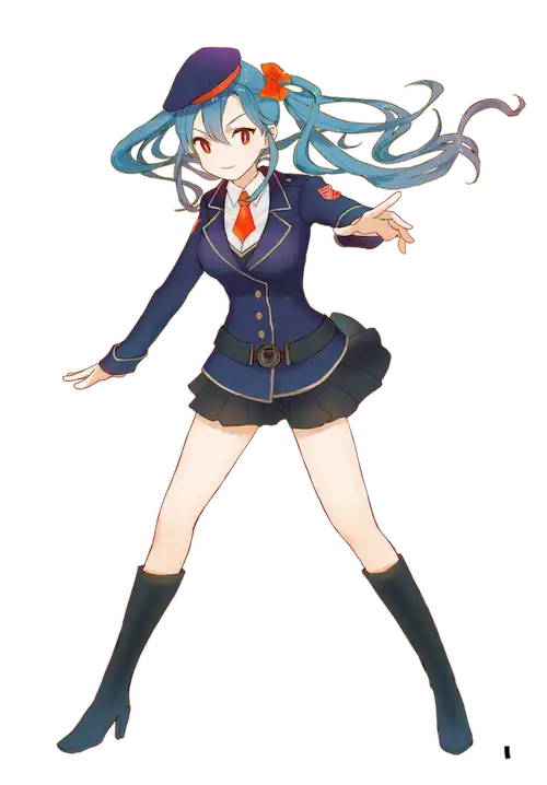 一个穿警卫制服的少女正兴奋的对着旁边爵士模样的黑发男子眉飞色舞的说话。结果讲到一半就憋不住,开始前仰后合的笑了起来,散乱的蓝色双马尾也随着她的身体一起颤抖。