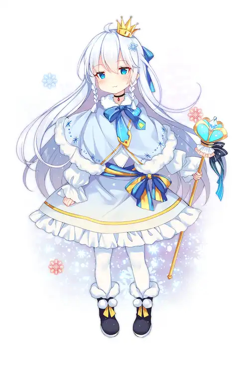 “红色冰”以及权杖是自己设计的。不过一开始的构想是“戴着父王和母后的皇冠”,后来还是觉得戴两个皇冠很奇怪,就改成把皇后的皇冠放在权杖上了。权杖也是正文中非常重要的道具。