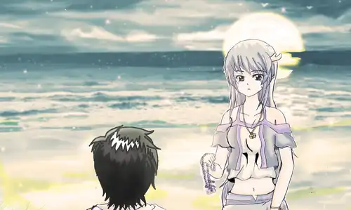 在她走后,忽然从树林的方向吹来一阵微风,我没有再去挽留,只是静静的看着她潜入海里。